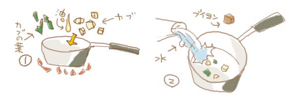 ※水を足す前に香り付けとして白ワインをさっとふっても良し。