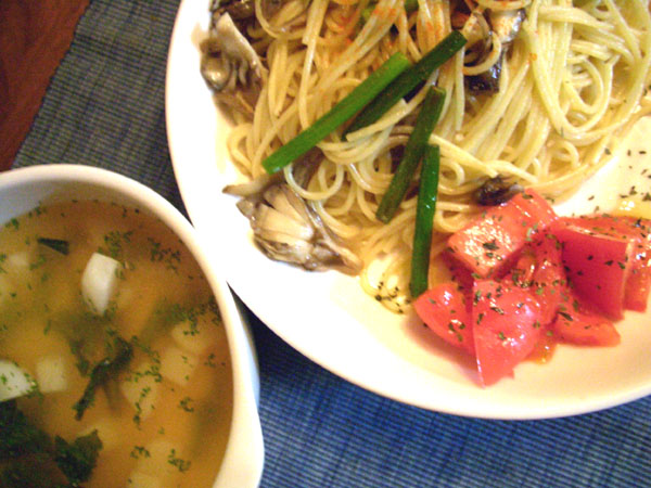 正確にいうとペペロンチーノ風だと思います。舞茸(マイタケ)はキノコの中でも食物繊維が多いので比較的良く使う食材です。