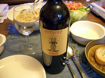 3、白ワインを入れ、アルコールを飛ばし、水を足して、コンソメ(マギーブイヨン)を入れる。通常、味噌を入れないのであれば2個。今回は1個。