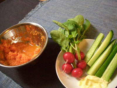 昨日の残りのニンジンのドレッシングをたっぷりつけて。