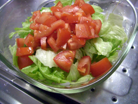 レタスとトマトしかなかったので、シーキチンを入れることに。